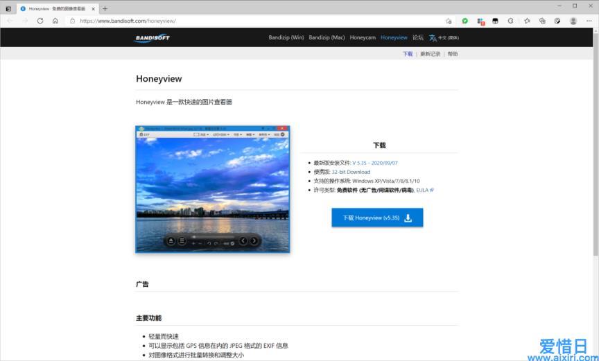 HoneyView,同样是一款来自国外的看图软件,支持 Windows XP/Vista/7/8/8.1/10 系统,免费且不包含广告,可以说是非常良心了。