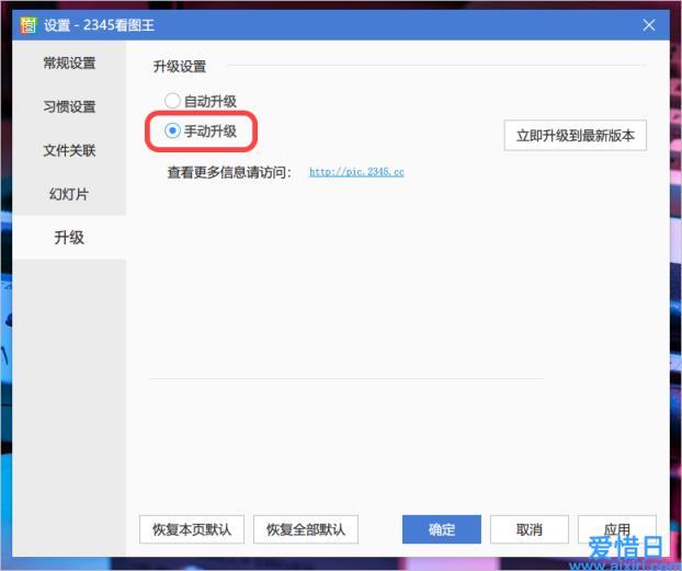 下载纯净版之后,先打开软件的设置,切换到「升级」选项卡,将「自动升级」更改为「手动升级」,关闭软件的自动更新。