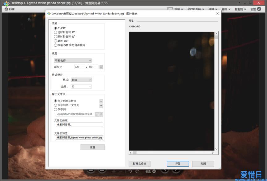 HoneyView 内置的「编辑」功能,可对图片进行旋转和裁剪,并设定导出后的文件格式。