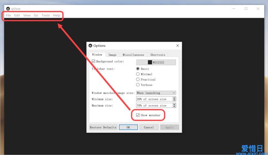 勾选「Show menubar」,选择在软件顶部显示菜单栏,这种操作方式可能更符合平时的使用习惯。