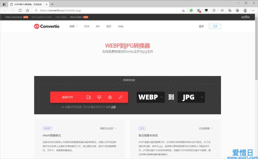 一个是先将 WebP 格式转换为更常见的图片格式,例如使用在线图片转换工具 Convertio。