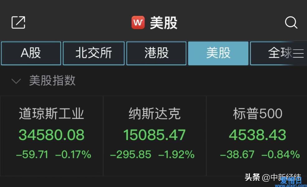 截至收盘,道指跌0.17%,报34580.08点;纳指跌1.92%,报15085.47点;标普500指数跌0.84%,报4538.43点。