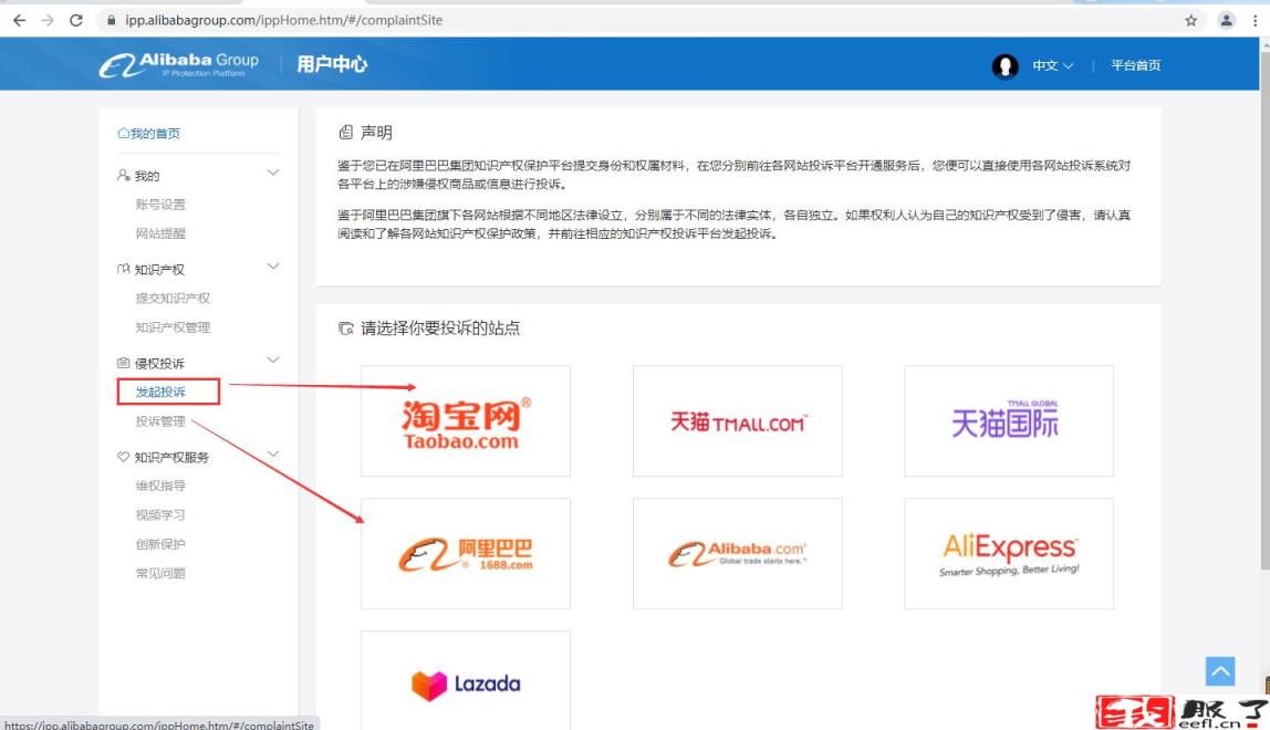 1、点击发起投诉,选择投诉站点