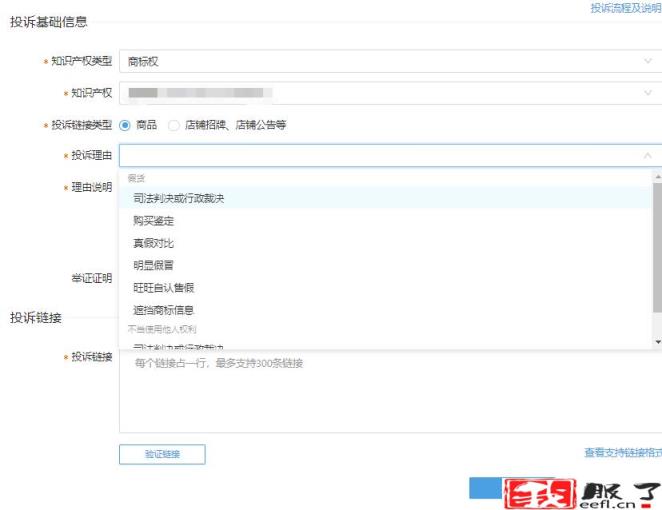 注:知识产权填写:商标侵权商家