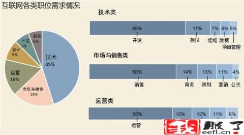 1、互联网各类职位需求状况