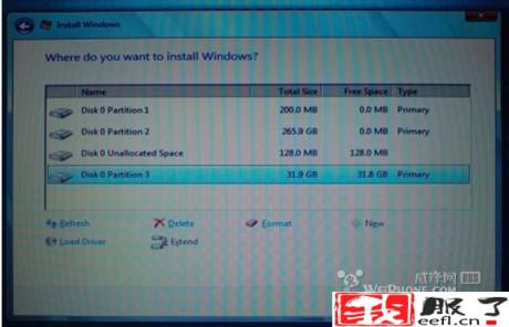 一旦完成分区你就可以开始安装你的Windows 7了,插入 刻录好的Windows 7安装盘,点击Start Installation开始安装。