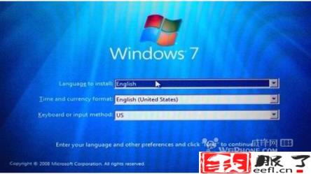 这时你的电脑将重新启动进入Windows 7安装界面,选择语言、时间格式和键盘布局格式。然后点Next下一步 。