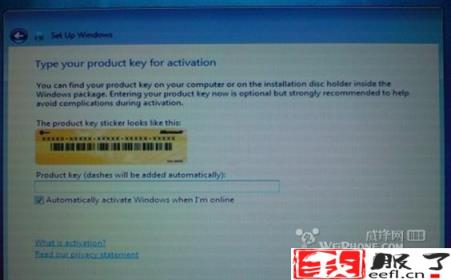 Windows 7将问你要产品序列号,直接不输,点下一步继续。