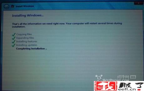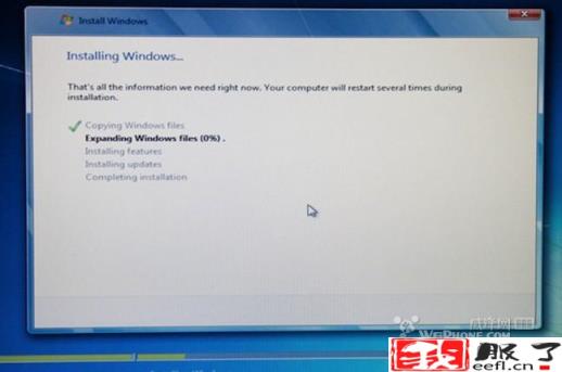 Windows 7安装开始复制文件,需要等待一段时间,复制完毕后电脑还将重新启动。(这个时间挺长的,大概20分钟)