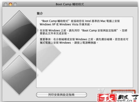 Boot Camp将开始分区你的硬盘…