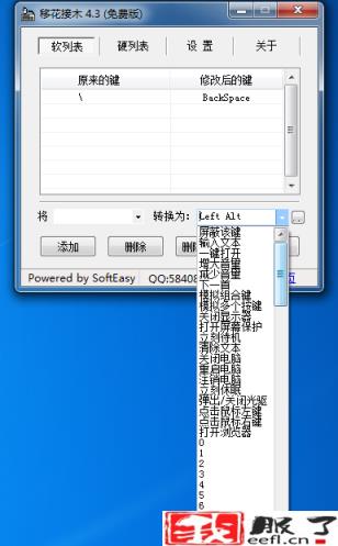 当前显示的页面如果为“硬列表”,那么你所添加的键转换是以修改注册表方式实现的,注销系统即可生效,无须运行软件。