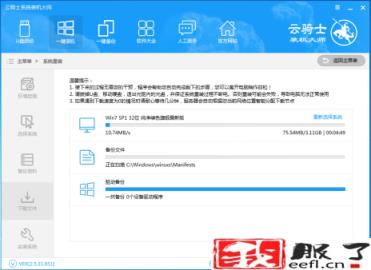 1、下载安装云骑士装机大师,打开后点击重装系统。