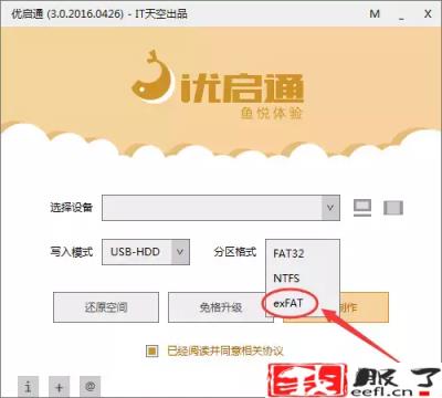 然后可能有些小伙伴的U盘是制作成了PE启动盘的,这种情况建议在制作时就选择exFAT,目前许多工具也开始支持exFAT格式制作了。