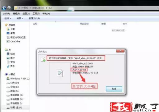 场景二:下载了一个吻妻64位Win7系统镜像,大小4G多,想复制到U盘备用,可提示文件太大!
