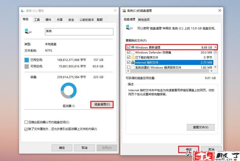 打开此电脑,右键C盘,选择打开【属性】,点击【磁盘清理】,勾选【windows更新清理】。