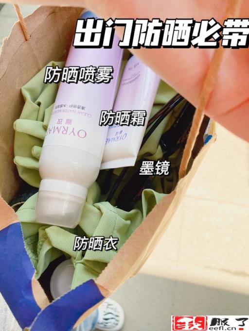 常见的物理防晒有:带有指数的防晒衣、防晒帽、墨镜、冰袖、防晒面罩等都是必不可少的