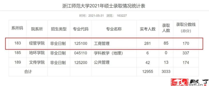 此外,浙江师范大学2021年非全日制MBA实考人数281,一志愿过线人数74人左右,过线率26.3%。