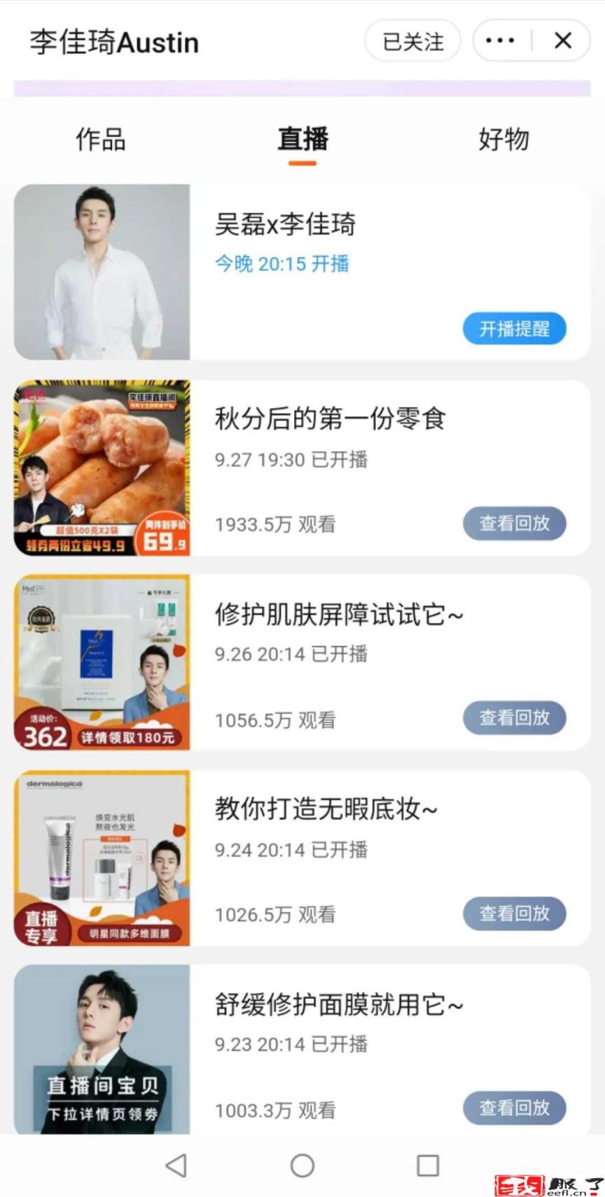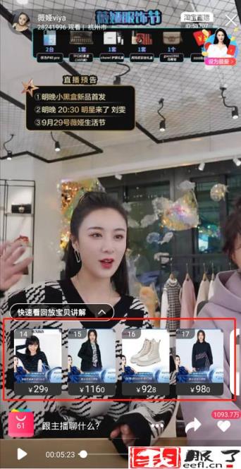 淘宝直播的回放功能,为每件商品都设置了节点,消费者对哪件商品感兴趣,可以点进详情观看。