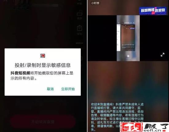 点击“开始录屏直播”后,抖音短视 频将开始截取你的屏幕上显示的所有内容(左图),即使是回到手机的主页面,使用其他软件,也会被同步出现在直播间(右图)