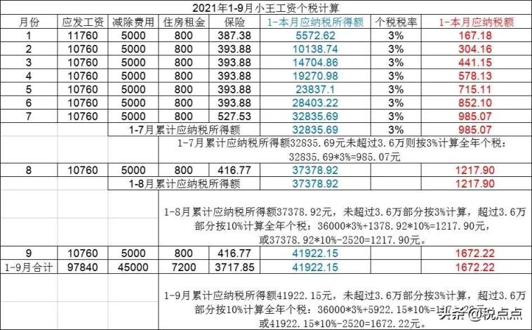 3)2021年3月工资35000元,所有扣除项合计6000元