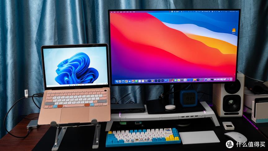 有必要的话你可以用其中一个屏显示原机Mac OS系统,另一个屏全屏显示、运行Windows 11的内容,并且虚拟机和主机之间支持剪贴板共享以及拖放操作,单屏的话融合模式也很给力。当然你想要主机、虚拟机都流畅的话,建议还是买16G内存版本的M1吧,很多人的虚拟机体验不好,实际上就是内存不够的锅。M1配置的话16 RAM + 256G SSD就可以了,SSD不够可以用外接雷电硬盘解决,我的虚拟机就是放置在外置硬盘里的: