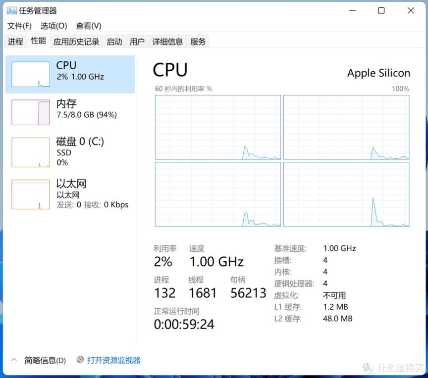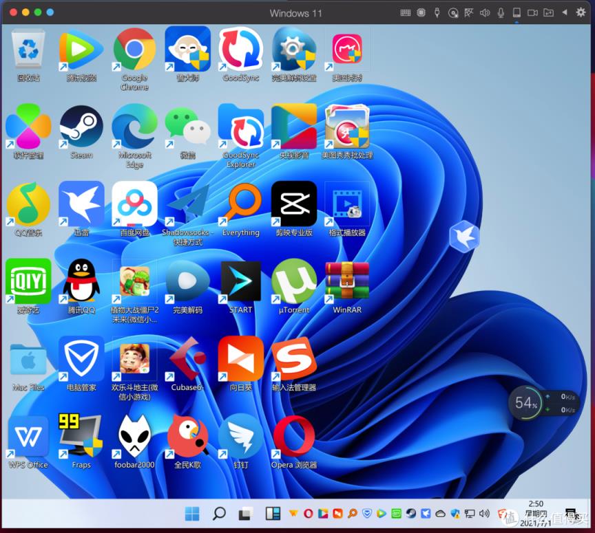 庞大一点的游戏这里就不做测试了,肯定不行,毕竟都需要ARM仿真,M1的GPU也是弱项。之后我再随便下载了几十款常用的软件,全部都是ARM仿真(转译)的,全部都可以正常运行,很少有延迟卡顿的现象,开启一堆后台后仍然很流畅,可以得出结论是Windows 11目前应该还是用的Win10内核,兼容性比较好;M1电脑虚拟的ARM版本Windows 11属于可用级别。