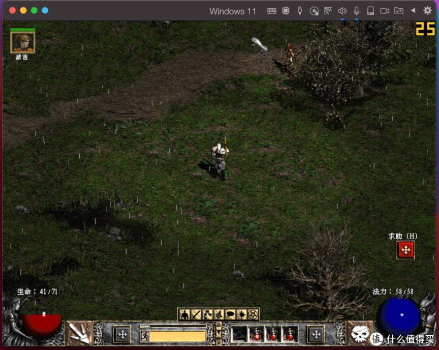 再用这个Windows 11跑老游戏试试。如图,可以流畅运行暗黑破坏神2,帧数是稳定在25FPS,不要惊讶,因为暗黑2单机版帧数本来就被限制在25FPS: