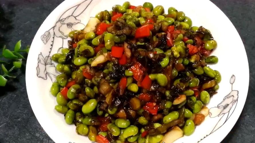 3.加入少许清水,调入白糖,中火煮2分钟,出锅装盘即可。三.凉拌毛豆的做法
