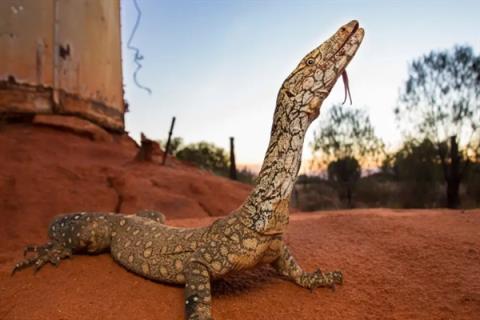 砂巨蜥是一种主要分布在澳大利亚和新几内亚地区的蜥蜴,喜欢干燥的生活环境,有很强的领域意识,体型不算很大,尾巴比较粗,在搜寻猎物时,后肢为站立起来,在遇到危险时会发出嘶嘶的声音,食性比较广,主要以一些小型哺乳动物或者爬行动物为食。