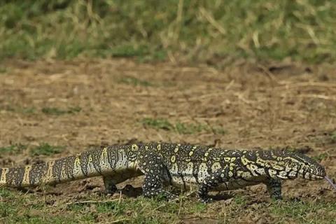 尼罗河巨蜥是一种生活在非洲雨林或者沙漠地区的大型蜥蜴,也是非洲最大的蜥蜴之一,体型比较细长,主要以一些蛙类、鱼类和蛇类为食物来源,但值得一说的是,它遇水之后身上的鳞片颜色会变得比较的鲜艳。