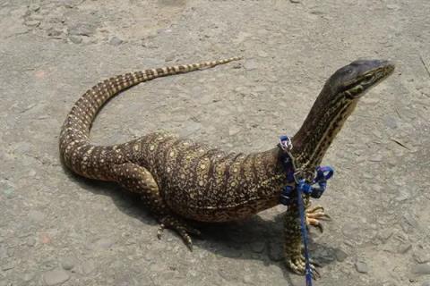 孟加拉巨蜥是一种主要生活在印度半岛和中南半岛的大型蜥蜴,身上带有一些黄色斑点,头部呈三角形,虽然一般多在地面上活动,但也会爬树,平时主要以一些青蛙、蛇和其他蜥蜴为食。