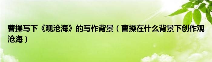 关于曹操写下《观沧海》的写作背景,曹操在什么背景下创作观沧海的介绍到此结束,希望对大家有所帮助。