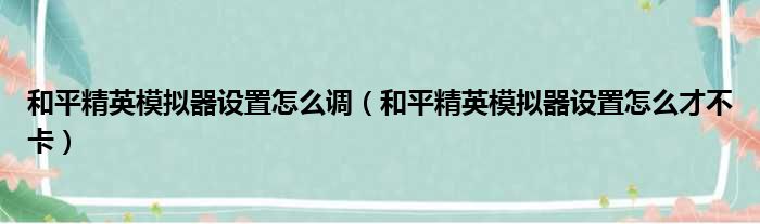 关于和平精英模拟器设置怎么调,和平精英模拟器设置怎么才不卡的介绍到此结束,希望对大家有所帮助。