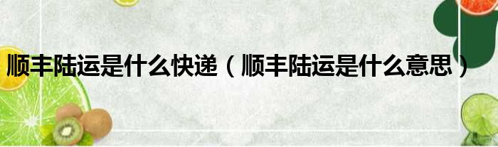 大家好,小纵来为大家解答以上问题。顺丰陆运是什么快递,顺丰陆运是什么意思这个很多人还不清楚,现在一起跟着小编来瞧瞧吧!