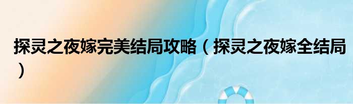 关于探灵之夜嫁完美结局攻略,探灵之夜嫁全结局的介绍到此结束,希望对大家有所帮助。