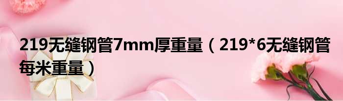 大家好,小纵来为大家解答以上问题。219无缝钢管7mm厚重量,219*6无缝钢管每米重量这个很多人还不清楚,现在一起跟着小编来瞧瞧吧!