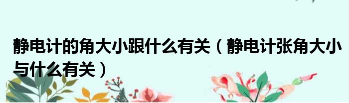大家好,小纵来为大家解答以上问题。静电计的角大小跟什么有关,静电计张角大小与什么有关这个很多人还不清楚,现在一起跟着小编来瞧瞧吧!