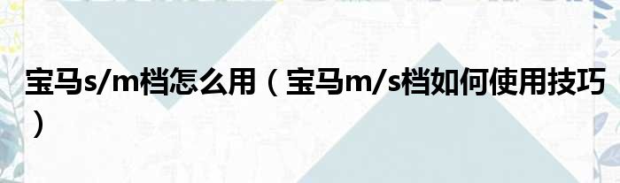 关于宝马s/m档怎么用,宝马m/s档如何使用技巧的介绍到此结束,希望对大家有所帮助。