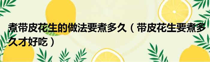 关于煮带皮花生的做法要煮多久,带皮花生要煮多久才好吃的介绍到此结束,希望对大家有所帮助。