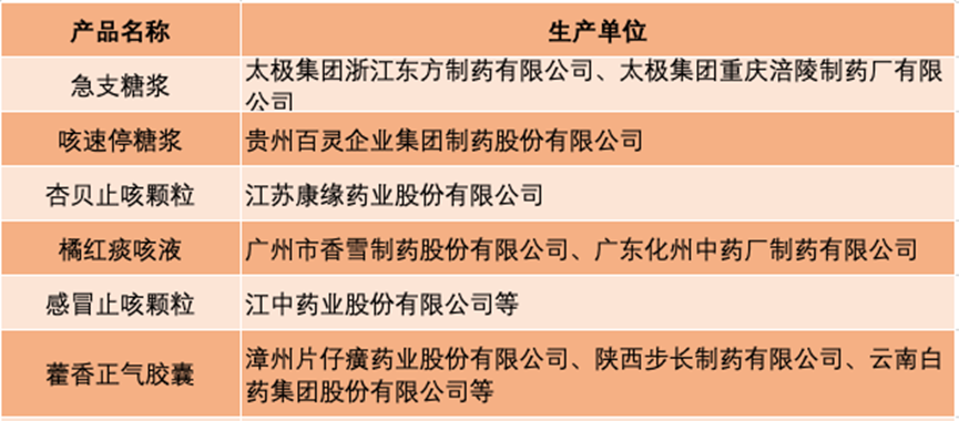 感冒清热胶囊、九味羌活丸、四季感冒片的获批厂家较多,生产单位涉及吉林敖东、太极集团、葵花药业等多家上市公司。