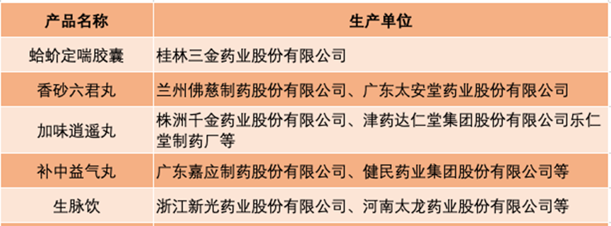 国家药品监督管理局网站信息显示,上述产品涉及贵州百灵、康缘药业、香雪制药、江中药业等公司产品。