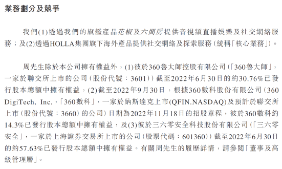 此外,花房集团招股书显示,截至2022年6月30日,周鸿祎拥有鲁大师30.76%的权益。