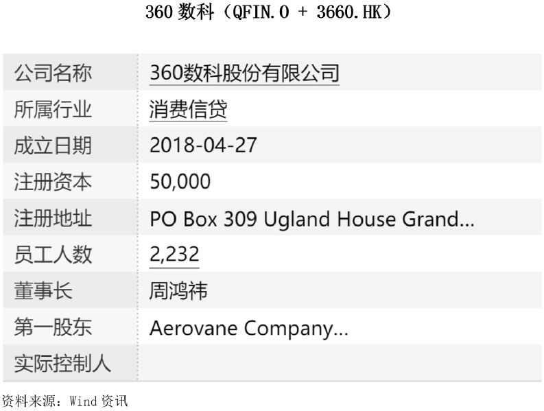 360数科有限公司(原:360金融)是领先的互联网消费金融平台。资料显示,2016年,360金融成立,2018年12月登陆美国纳斯达克上市。2020年9月15日,公司名称由360金融变更为360数科有限公司。