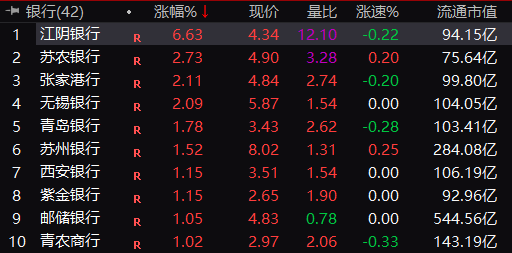 苏农银行、张家港行、无锡银行等也纷纷大涨。
