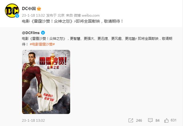 1月18日消息,DC官方宣布电影《雷霆沙赞!众神之怒》即将在中国内地上映,定档日期待定。该片已定档3月17日北美上映。