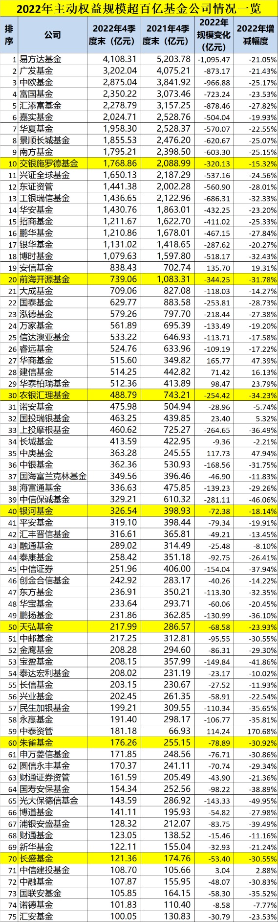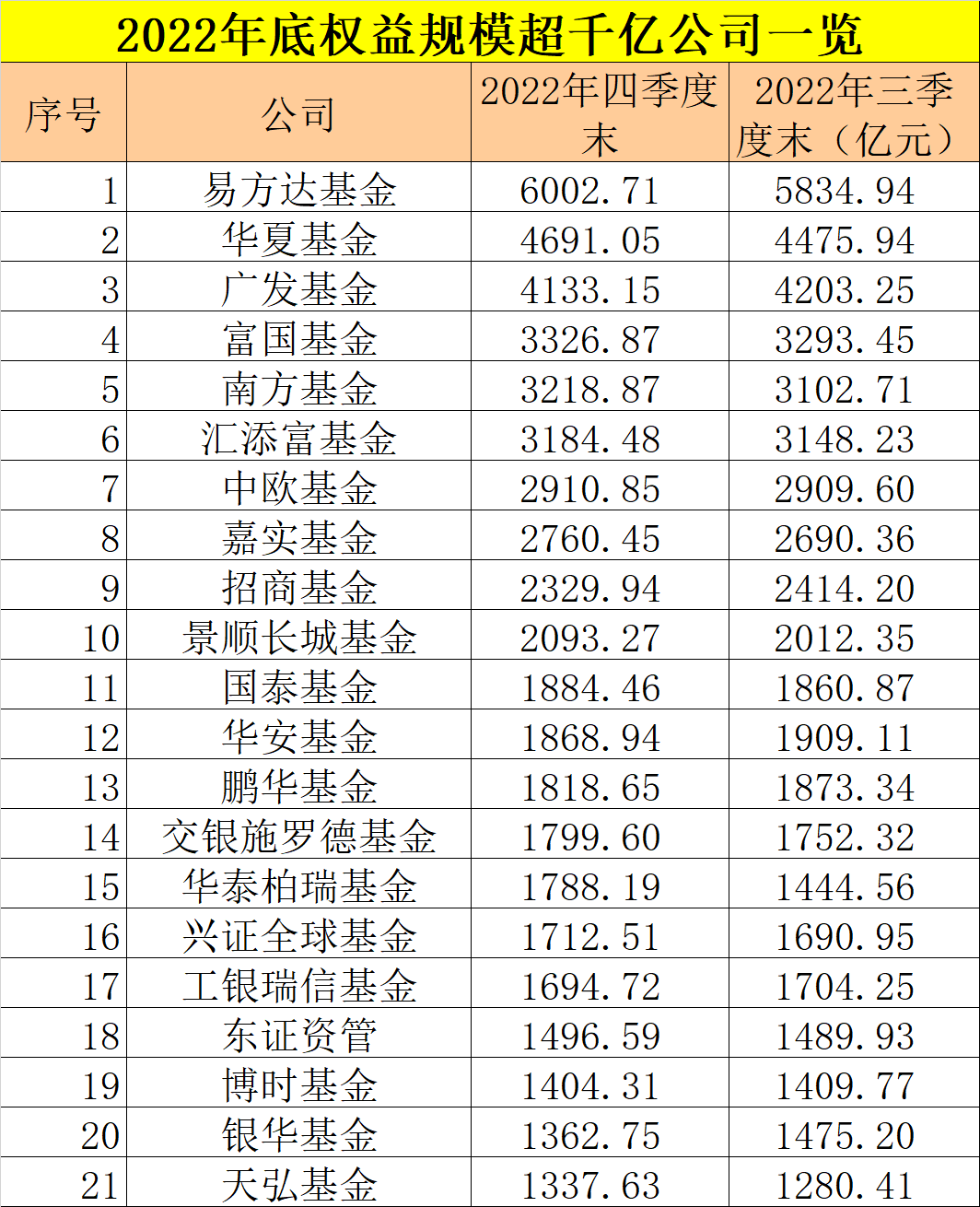 2022年公募基金四季报的披露,让基金公司的最新规模情况随之曝光。