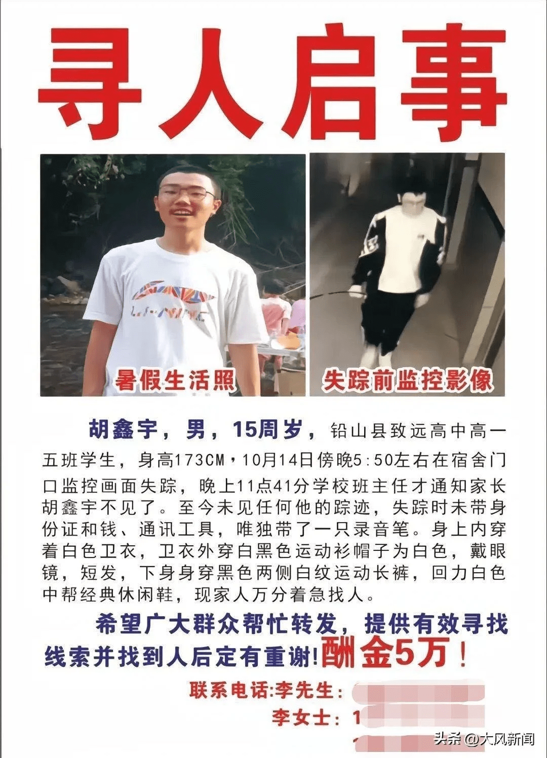 胡鑫宇是江西上饶铅山县人,出生于2007年7月。失踪前,胡鑫宇在铅山县致远中学读高一。2022年10月14日傍晚,胡鑫宇从学校失踪,引发社会广泛关注。截至2023年1月28日,胡鑫宇已失踪106天。