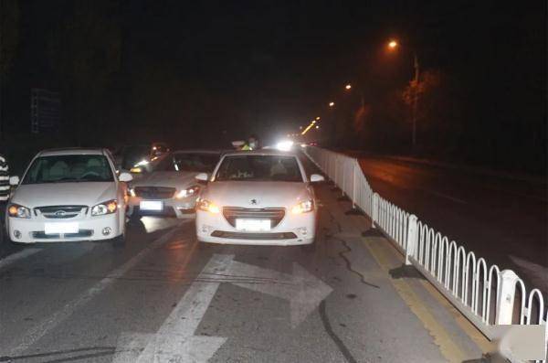 临沂交警支队在辖区滨河东路奥正雅苑路段开展酒驾专项整治行动时,民警在对一白色轿车驾驶员例行检查时,驾驶员拒不配合检查,加速向前驶去,结果撞上了正在前方等红绿灯的两辆轿车,所幸只是车辆损失未造成人员受伤。