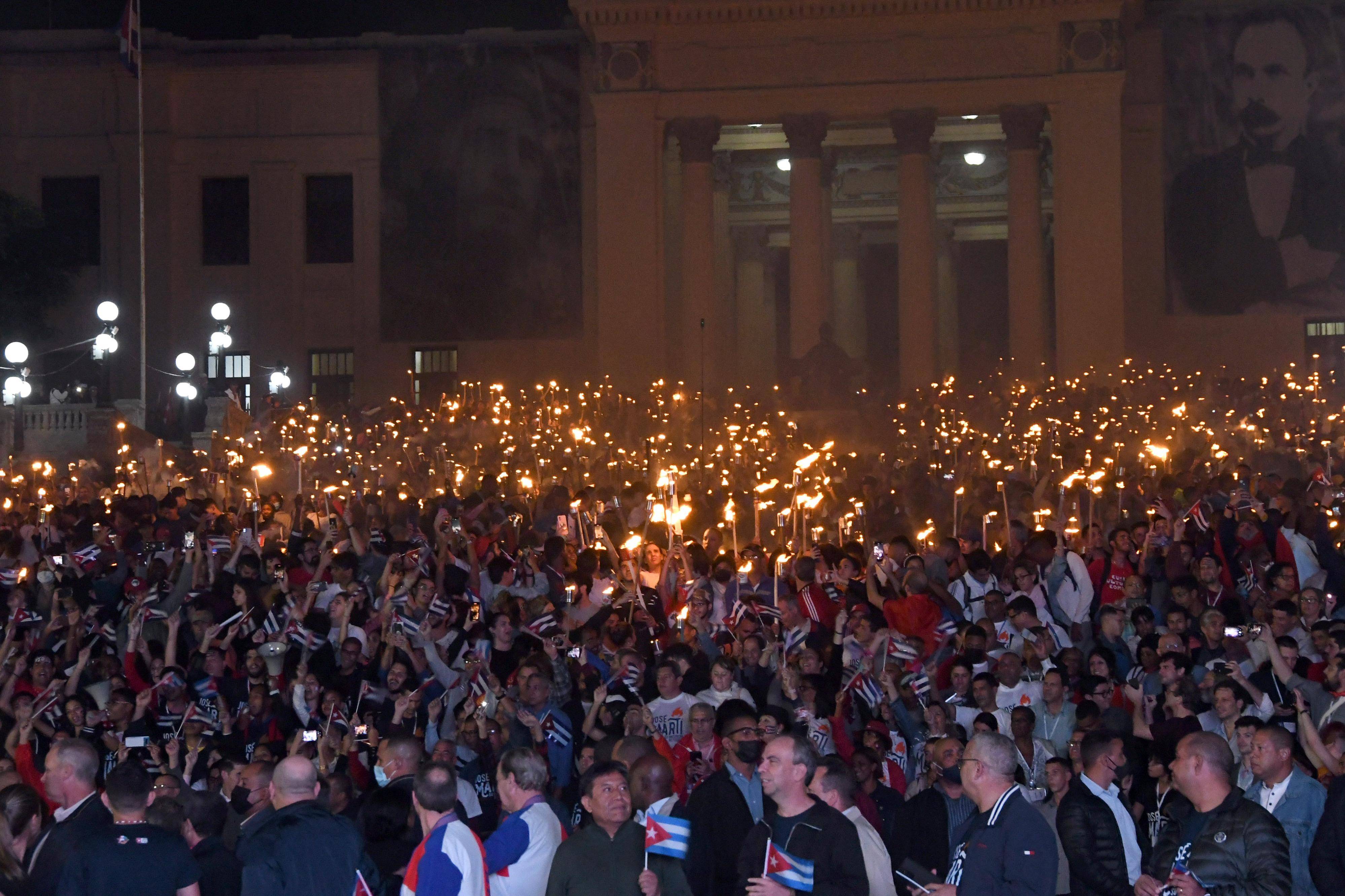 1月27日晚,古巴民众在首都哈瓦那参加纪念何塞·马蒂诞辰170周年活动。 新华社发(华金·埃尔南德斯摄)