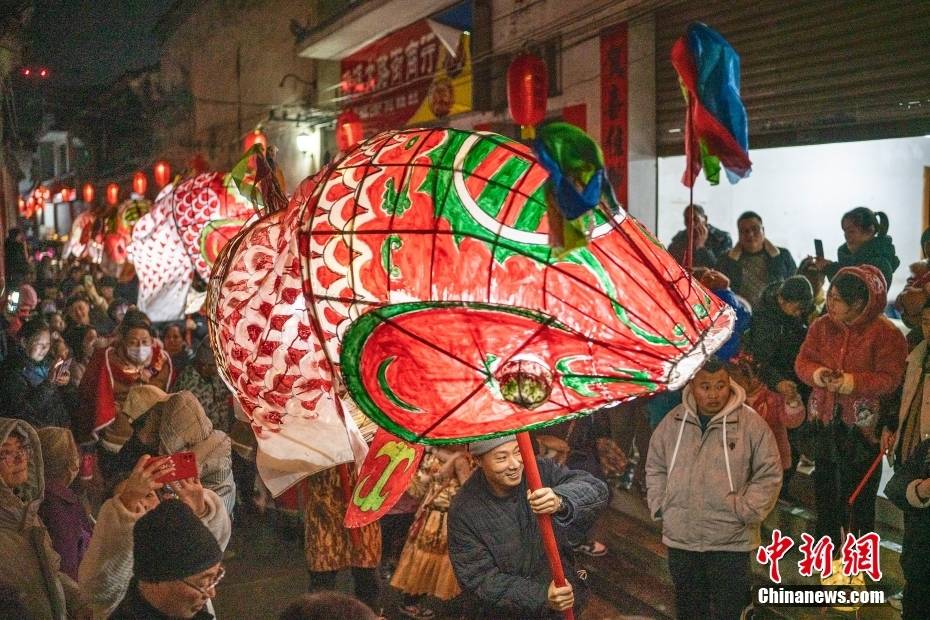 安徽省歙县北岸镇瞻淇古村落热闹非凡,农民嬉鱼灯,庆新春。 中新社发 水从泽 摄 图片来源:CNSphoto